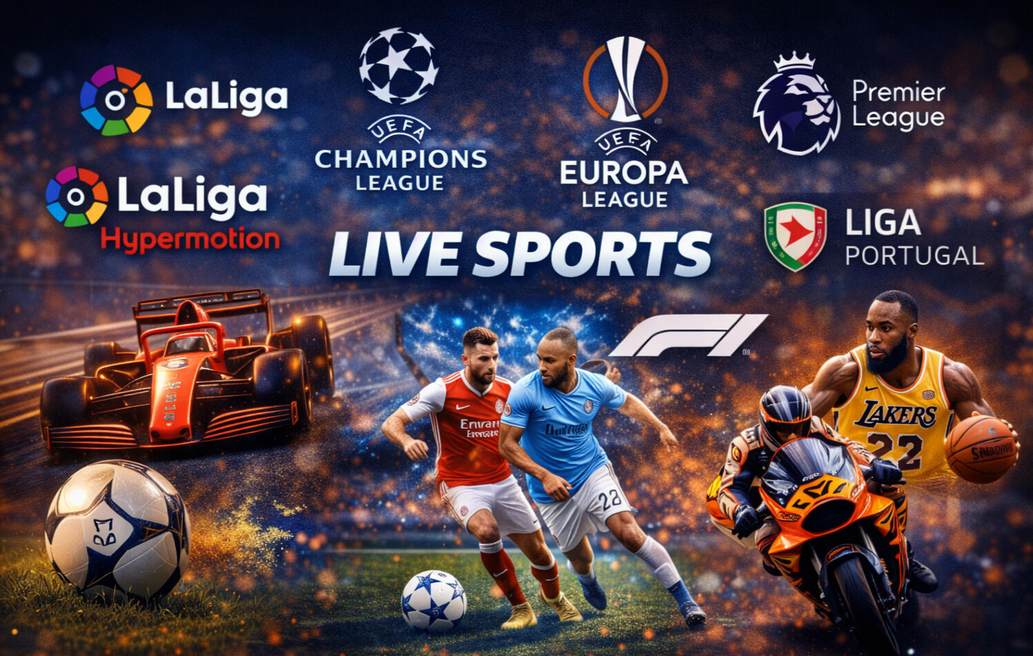 Cobrimos todos os eventos desportivos, porque sabemos que os queres ver todos: LaLiga EA Sports, LaLiga Hypermotion, Champions League, Europa League, Premier League, Liga Portugal, MotoGP, F1, NBA...